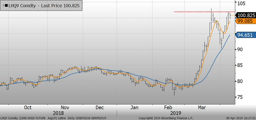 Le non-aboutissement des rencontres entre la Chine et le États-Unis influencent un peu l’état d’esprit des négociants. Il faut noter que les fonds d’investissement et les spéculateurs ont accumulé des positions acheteurs récemment ce qui les placent dans une situation confortable à ce jour. Il y a quelques temps ces fonds étaient des vendeurs nets de contrats de porc pour devenir acheteurs de plus de 35 000 contrats.