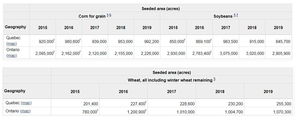 Pour QC/ON… plus de maïs et moins de soja que l’an passé. Rapport en annexe.