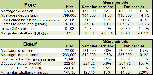 Nous avons parlé souvent dans cette chronique des données d’abattages supérieures aux attentes et de l’augmentation de l’offre globale de viande présente et à venir. C’était clairement des signaux à considérer pour mettre une structure de mise en marché en place.