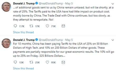 D’un gazouillis, Trump coule les marchés en menaçant la Chine de tarifs additionnel cette semaine. Les cours ont pu reprendre un peu en cours de séance, mais reste dans le rouge pareil.