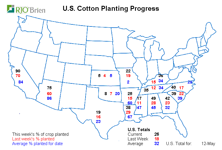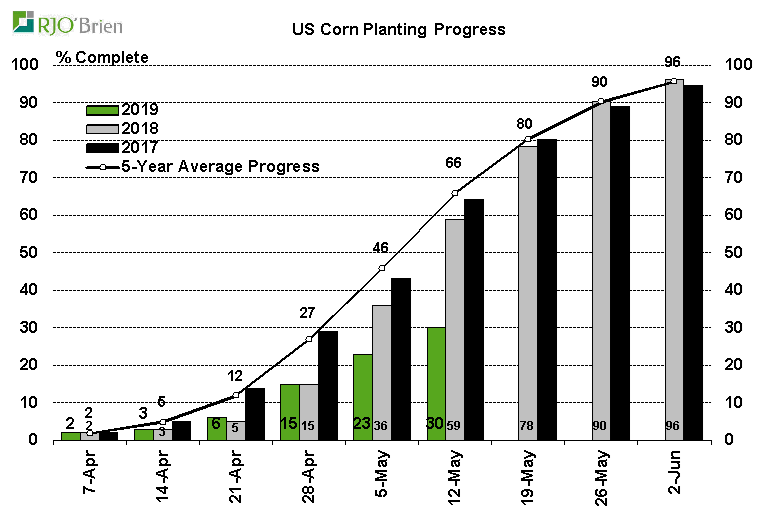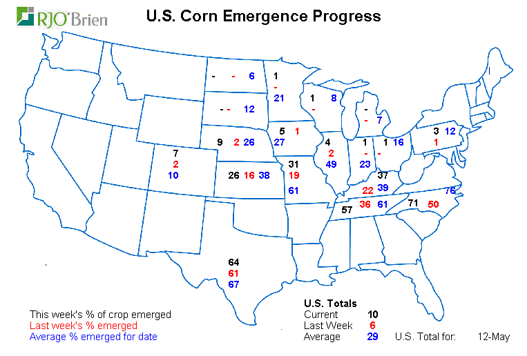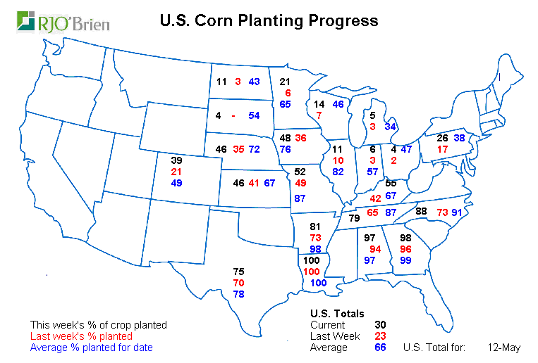 - Maïs : semé à 30% vs 23% semaine dernière ; moyenne 5 ans à 66%