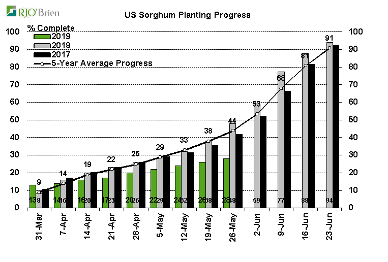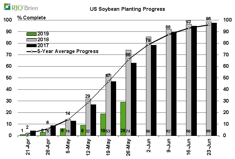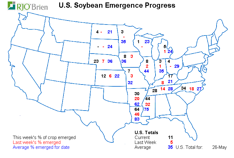 - Soja semé à 29%, vs 19% la semaine dernière et 66% en moyenne