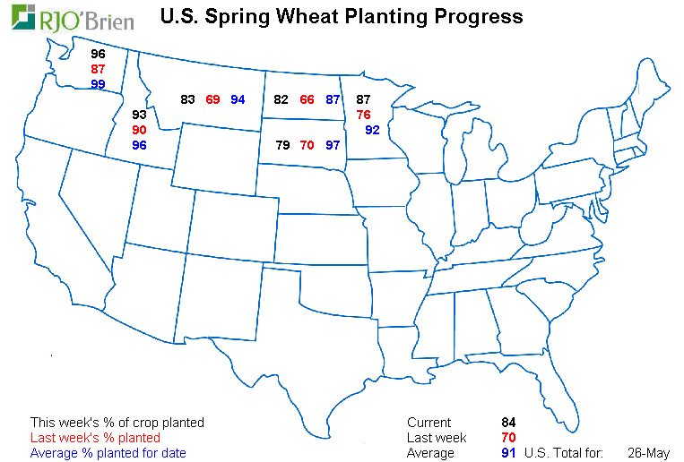 Globalement on parlait de 92.8M d’acres dans le maïs et 84.6M dans le soja, soit un total de 177.4 millions. Actuellement on est à 53.8 millions de semé en maïs et 25.5 millions pour les fèves selon l’USDA. Sur les 177.4 millions d’acres prévu, seulement 79.3 millions sont semés, soit moins de la moitié ou 44%.