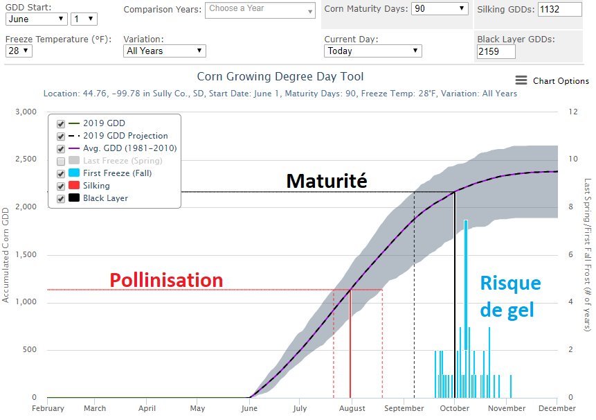 Oui, on sait tout ça, mais leur site est intéressant parce qu’il quantifie et illustre bien le phénomène et indique aussi les historiques et moyennes des dates de gelés en fonction de la maturité et du type d’hybride.