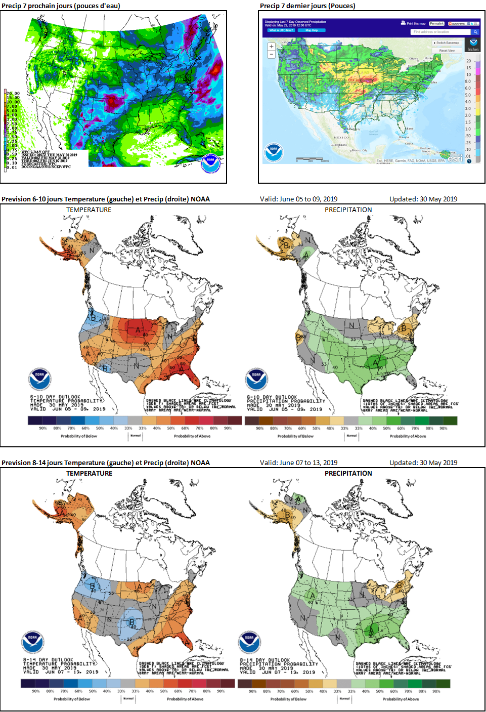 Carte Météo : Toujours aussi compliqué. À court terme peut-être moins rependu et plus concentré dans le sud-ouest du Midwest. Ensuite les forecast long-terme 8/14 on retrouve des probabilité de précipitation.