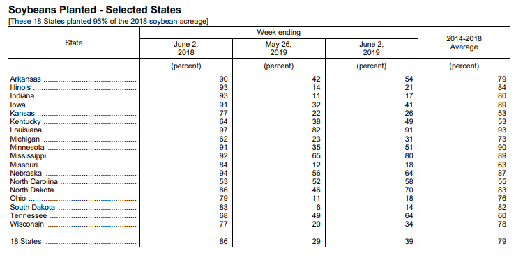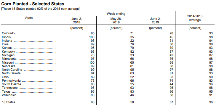 Au 2 juin, le corn est semé à peine au deux tiers. Le soja, même pas proche de la moitié. Ca va vraiment pas bien.