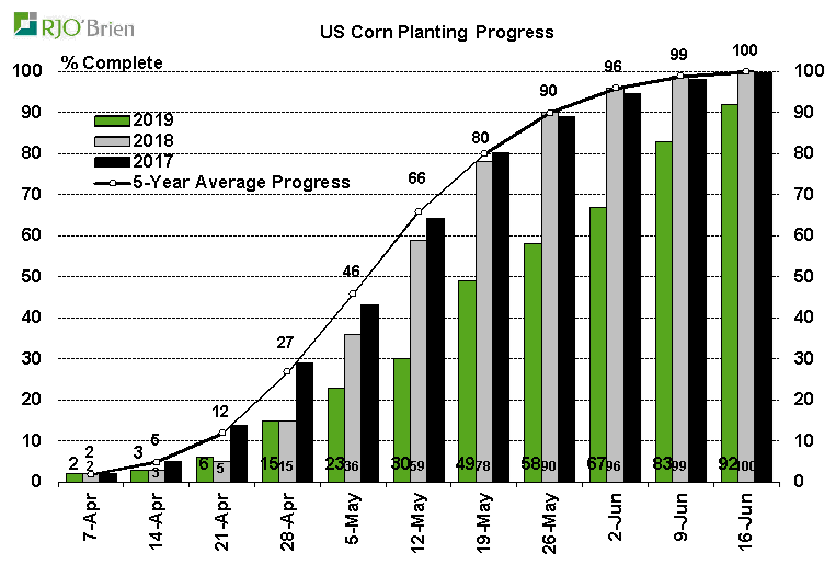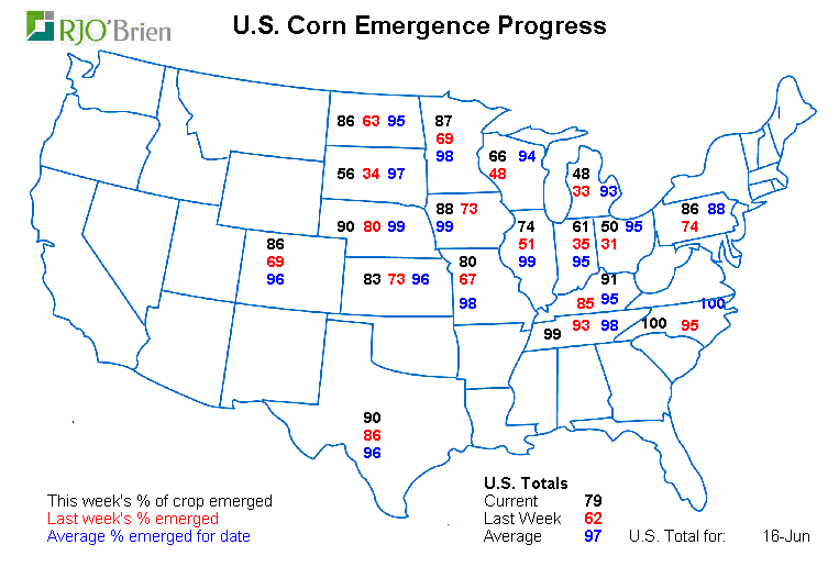 Le retard dans les semis pour le bédingue c’est chose du passée…. Je pense? De plus en plus, je ne sais pas si les cultivateurs vont en semer rendu là…. C’est dur à dire. Un gamble que l’été va être correct pis que les prix à l’automne resteront bon? L’USDA dit qu’il sont à 92%, reste donc 8% à faire ce qui correspondrait à 7.5 millions d’acres. Si c’est bien le cas les 10-12 millions d’acres de pas semé parait exagéré. Je ne sais pas quand est-ce que l’USDA va arrêter de publier les semis de corn... J’imagine que c’est pas mal la dernière semaine ou sinon la prochaine…? Le rapport très important est le 28 juin prochain.