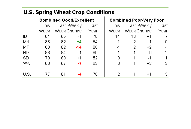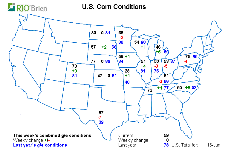 - Maïs : qualité inchangée à 59% good/excellent, vs 78% l’an dernier