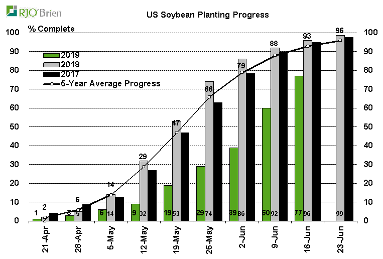 Le soja lui est à 77% semé, donc il reste 23% ou presque 20 millions d’acres…. Et les cartes météo ne sont pas bonnes... Combien d’acres seront semé, abandonné, dans quelles conditions… c’est très difficile à dire.