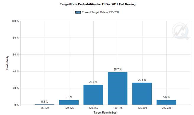 La Réserve Fédérale américaine a laissé son taux directeur inchangé à 2.5%, c’est assez bien prévu malgré que plusieurs misent sur une baisse cette année. C’est très difficile à comprendre je trouve les taux d’intérêts aux USA. Plusieurs indicateurs économique sont en bonne postures…. Le PIB progresse bien, l’emploi roule full pinne, le chômage est à un bas de 50 ans. Bref l’économie ne va pas mal pour baisser les taux…. Mais mon chum Donald veut les faires baisser. Aussi l’inflation est un peu faible aux USA (étrangement). Presque l’ensemble du marché misent sur une baisse des taux, pas juste un peu à part ça. En fait d’ici décembre, PERSONNE mise que les taux US vont rester à 2.5% et il y a même des possibilité de 6 coupes. Je trouve ça assez intense, mais on ne sait jamais ce que l’avenir nous réserve. Le conflit avec la Chine pourrait commencer a faire tourner les choses dans les 6 prochains mois…? Aussi, la récente hausse des taux depuis 2016 est peut-être remise en question... oui les taux n’ont pas monté tant que ca, mais c’est pas mal juste aux USA qu’ils ont monté alors que l’Europe et l’Asie n’ont pas modifié leur politique monétaire autant. Si les taux baissent beaucoup aux USA, mais pas autant au Canada, notre dollar canadien pourrait s’apprécié – c’est ce qu’on a vu aujourd’hui avec notre monnaie se renforcir suite à la Fed.