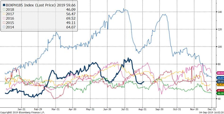 Les exportations demeurent ainsi le meilleur moyen de supporte les prix. La fin de l’année sera révélatrice de la demande sur ces marchés alors que plusieurs pays se sont abstenu d’acheter aux Etats-Unis, mais pourrait se voir forcer de magasiner en sol américain très bientôt en raison des prix relatifs, mais aussi de la logistique plus efficiente à exporter ce produit.