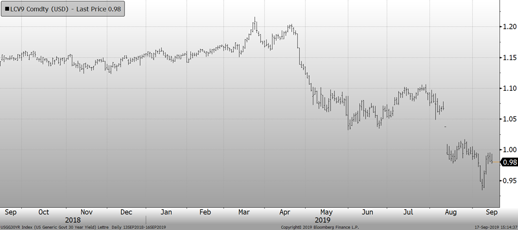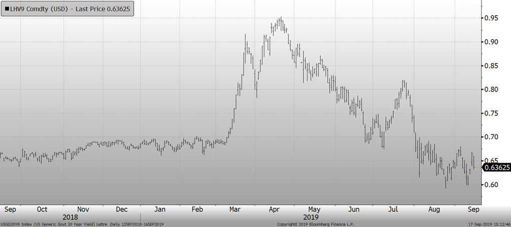 Digne des meilleurs montagnes russes, les prix des contrats à terme continuent de fluctuer dans toutes les directions, et ce, dans la même semaine. Limit up, limit down! Hier, le contrat de décembre 2019 a grimpé de plus de $2.50 USD / 100 livres en 45 secondes à la fin de la journée de négociation!