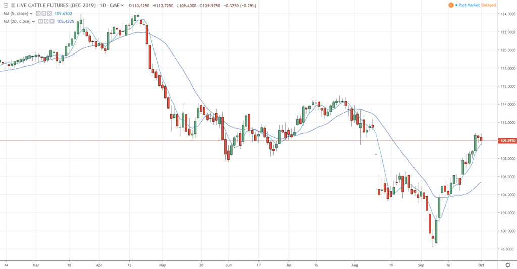 La Chine est en pleine célébrations de la Semaine dorée et le 70ieme anniversaire de la révolution communiste chinoise. Les autorités gouvernementales et beaucoup de travailleurs sont en congé pour toute la semaine. Il serait surprenant que des négociateurs annoncent des commandes d’achat de viandes américaines cette semaine. Une délégation commerciale chinoise sera aux Etats-Unis la semaine prochaine afin de préparer le terrain pour la poursuite des discussions et établir un accord sur le commerce. A moins qu’un tweet de Trump ne ruine encore les efforts de part et d’autre, les choses devraient progresser dans un sens constructif.