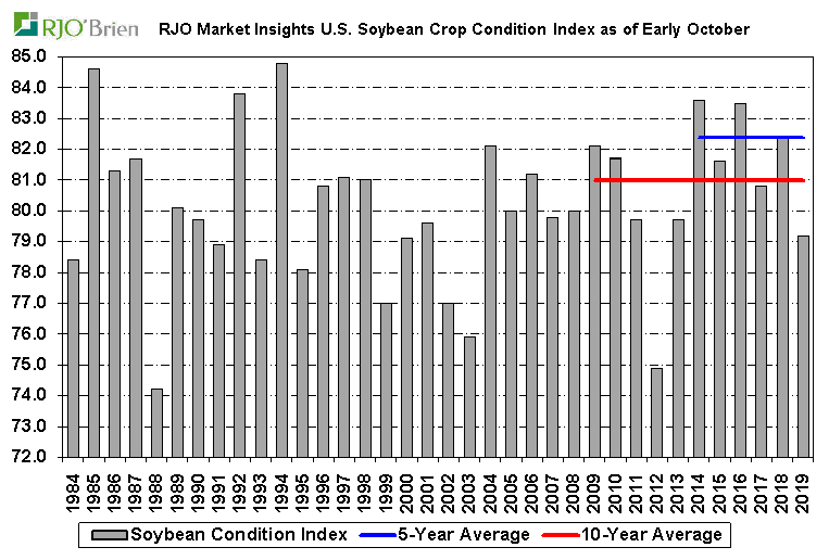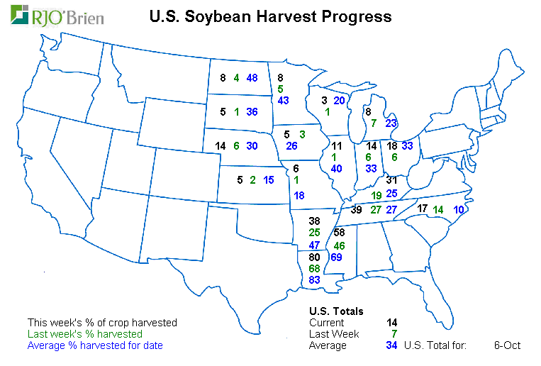 - Soja : récolté à 14% vs 31% l’an passé ou 34% en moyenne