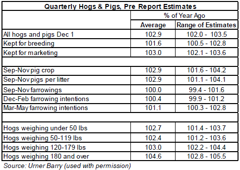 Tout comme le porc, le marché du bœuf se prépare pour la publication du rapport Cattle-on-Feed ce vendredi ainsi que la sortie du Cold Storage lundi 23 décembre. Comme tout bon rapport de Cattle on Feed, les attentes sont complètement disparates. Pour résumé les choses et utilisant la moyenne des attentes : le nombre de placements dans les parcs serait en hausse de 1.2%, les mises en marché en novembre seraient en hausse de 2.6% et le nombre d’animaux on Feed se situerait à 11.96 en hausse de 1.9% par rapport à 2018.