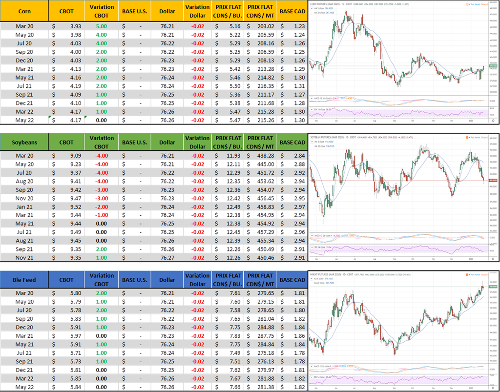 Les prix des grains ont progressé de manière intéressante depuis la baisse marqué de la semaine passée. Je dis résilient parce qu’on est revenu au même point qu’on était sans que la situation n’aille changé pour autant. Le deal avec la Chine est toujours aussi poreux, les achats massifs ne sont toujours pas apparu, l’USDA n’a pas modifié son bilan offre demande. Au lieu de dire que le marché est résilient j’aurais aussi pu dire qu’il est bipolaire comme les fans du Canadiens. L’équipe va en gagner une couple de suite et on s’excite, la ville devient complètement hockey et oh-my-god-ca-sent-la-coupe. On en perd une couple de suite, mets ca à 98.5 FM, prend toi une bonne tasse de thé pis écoute Ron jouer au psychologue et les fe-fanne échanger l’équipe au complet.