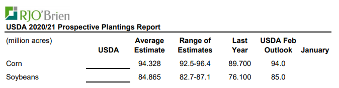 Avec autant de « facteurs externes » actuellement sur les marchés, il semble parfois que l’importance des rapports du 31 mars de l'USDA pourraient être sous-estimé par certains. Cependant, avec des surprises considérables reflétées dans le dernier rapport trimestriel sur les stocks, l'attente de la Chine d'être un acheteur important de produits agricoles américains « à un moment donné » et des idées de semis de printemps pourrait à nouveau s'avérer difficile, je ne pense pas que c’est très prudent que d’ignorer l’impact sur les marchés à terme MEME SI LE COVID DOMINE L’ATTENTION.
