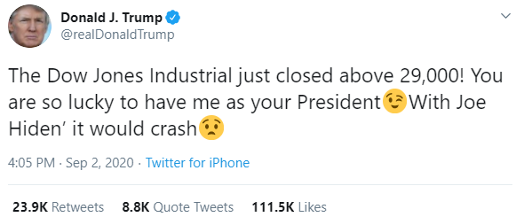 Pendant tout ça, le stock market atteignait des niveaux record cette semaine avant le repli important aujourd’hui. Oui oui, record. L’économie est dans le trou pendant que le S&P500, Dow Jones, Nasdaq atteignent des niveaux record. Donald s’en vante à tous les jours. C’est rendu un enjeu politique pour les prochaines élections. Mais le stock market ce n’est pas l’économie!