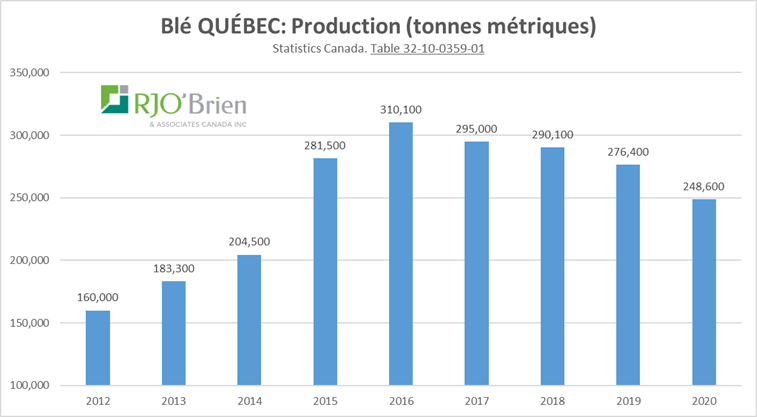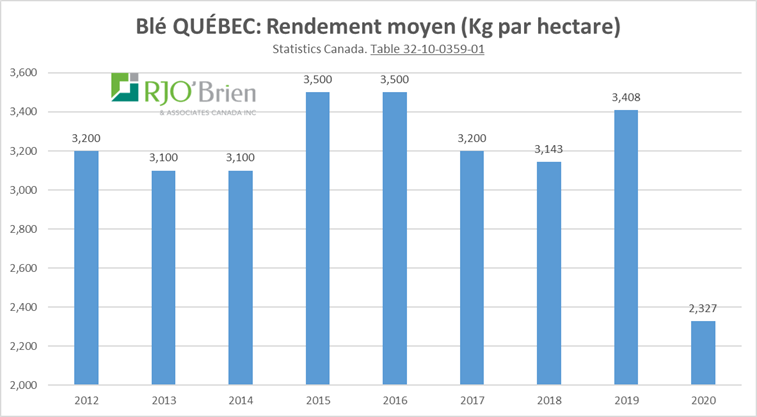 - Blé Québec : Ouf…. Un rendement beaucoup plus faible.