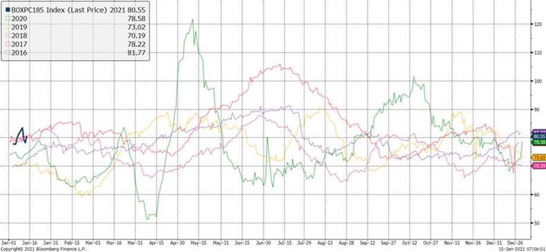 Parmi les autres nouvelles, il faut souligner la baisse graduelle du carnet de commande au niveau des exportations américaines. Bien que le USDA ait annoncé des ventes de 23 800 tonnes métriques hier matin, la Chine n’était pas présente parmi les principaux acheteurs. Par contre, le pays avait accusé la réception de 11 500 tonnes la semaine dernière. Ce qui est plutôt décevant c’est que le carnet de commande est de seulement 89 307 tonnes métriques pour la Chine, ce qui représente présentement, avec les ventes hebdomadaires, à peine 7 semaines d’exportations vers ce pays. L’an dernier les ventes réalisées mais non envoyées à la Chine étaient de 282 740 tonnes métriques. A moins d’avoir, des fortes ventes au cours des prochaines semaines, il faut peut-être faire un certain deuil de fortes ventes américaines vers ce pays en 2021. C’est ce qui était prévu de toute façon, mais peut-être pas dans cette amplitude et aussi rapidement.