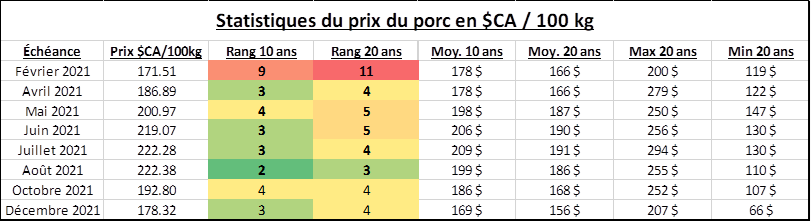 Décembre 2021 -> 69.00 cents ou 178 $CA/100kg