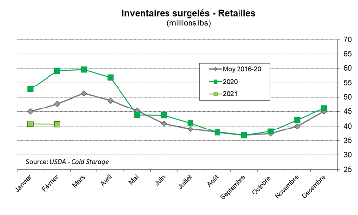 Rapport du Cold Storage au 28 février 2021. Les grandes lignes sont :