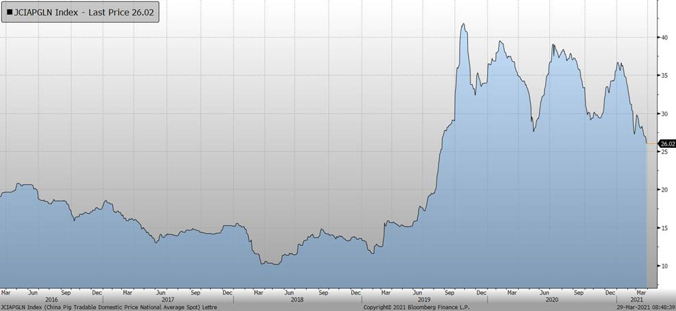 Prix du porc en Chine – CNY/kg