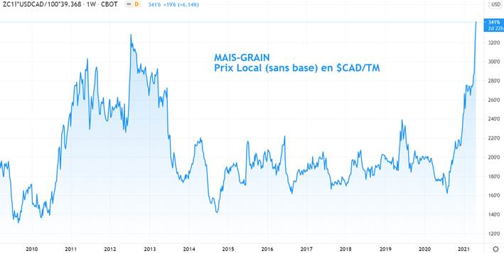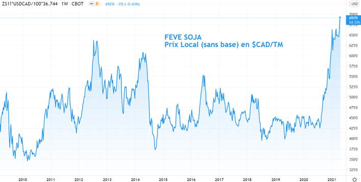 Personellement je suis un peu prudent sur ces données, possiblement que ces superficies peuvent augmenter dans les prochaines semaines si la météo est favorable et les intrants disponibles… apres tout le prix du grain est à un niveau record et selon moi l’attrait de produire le plus possible devrait etre là. Les superficies ne sont pas “faibles”, mais elles ne sont pas record alors que le prix lui est le meilleur (de tous les temps je pense).