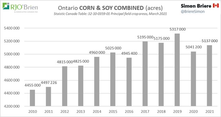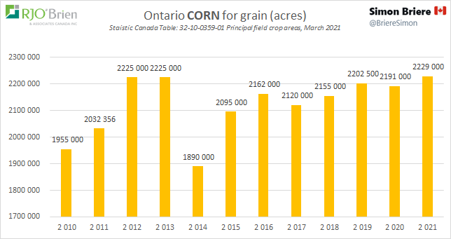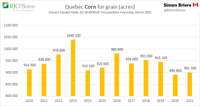 - Maïs : 2.2 million acres en Ontario et 901 milles au Québec