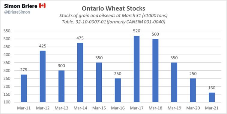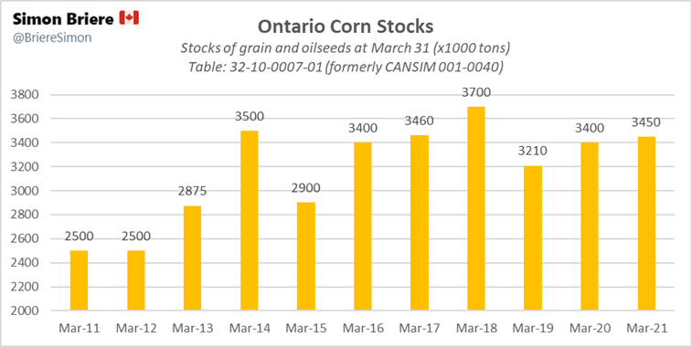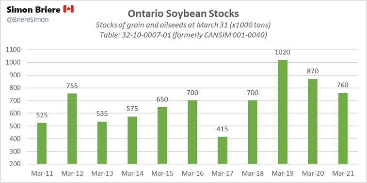 - StatsCan: Stocks des principales grandes cultures, 31 mars, 2021
