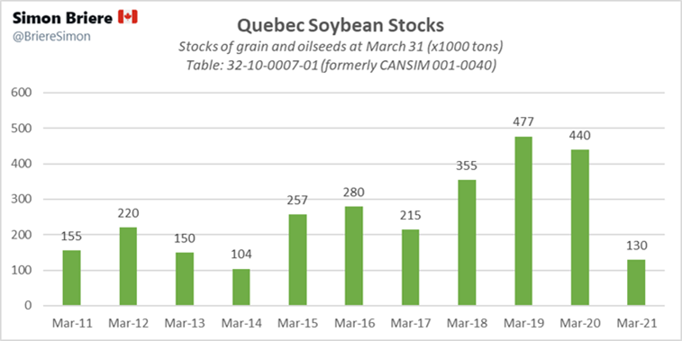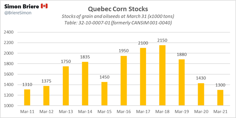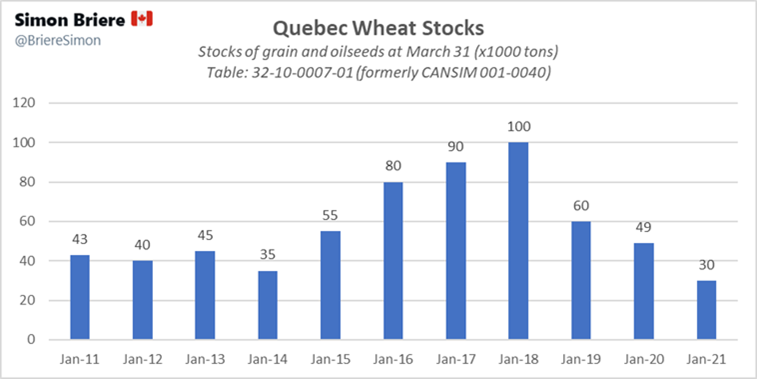 Alors en gros, selon StatsCan il y a de moins en moins de grain au Quebec.