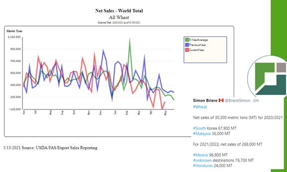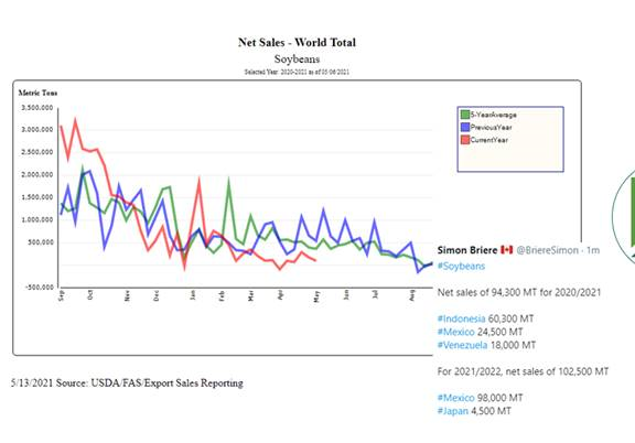 - Rapport USDA hier : Un peu plus d’inventaire fait baisser les prix