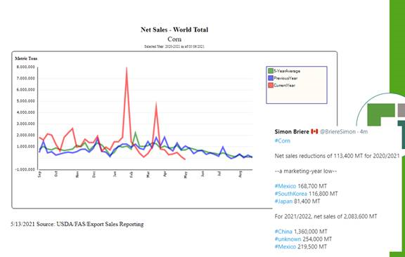 - Chiffre d’exportation U.S. : Booking sur la nouvelle récolte de maïs