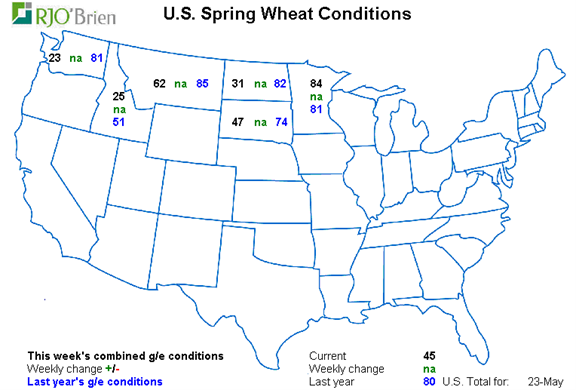 - Blé Printemps : Mauvais départ 45% bon/excellent