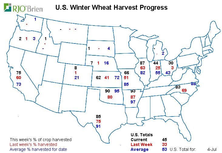 Blé Hiver: 45% récolté, conditions stable.