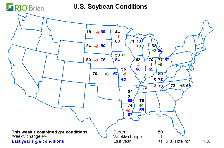 Soja: 59% bon/excellent, recul de -1% vs la semaine dernière