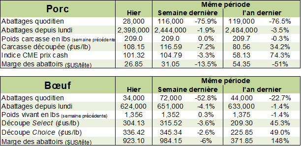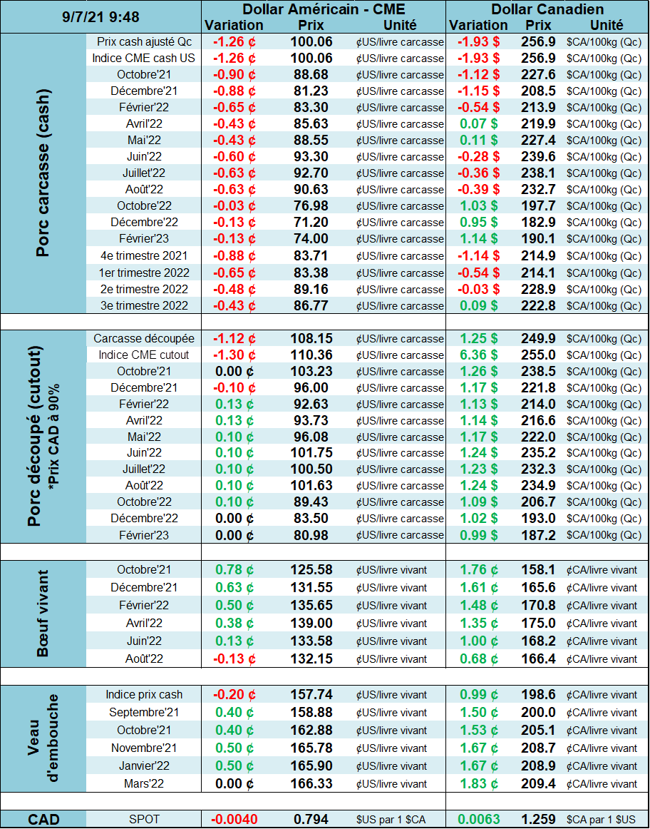 Au final, l’offre de viande à court terme restera limité d’autant plus qu’il y a de la capacité d’entreposage disponible. Cependant, si le cheptel reproducteur commence à augmenter, ce qui pourrait s’accélérer si le coût du grain baisse d’avantage, on devra s’attendre à des prix moindre pour 2022 versus 2021.