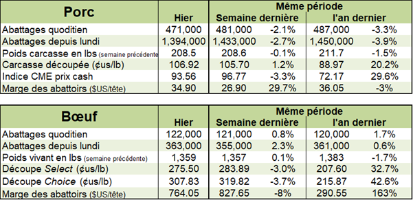 Les données d’exportations du USDA ont été dévoilées ce matin. Sommairement, elles sont bonnes se chiffrant à 32 600 tonnes métriques. Le Mexique, le Japon et le Canada sont les 3 premiers consommateurs et acheteurs. La Chine est encore une fois absente de la liste.