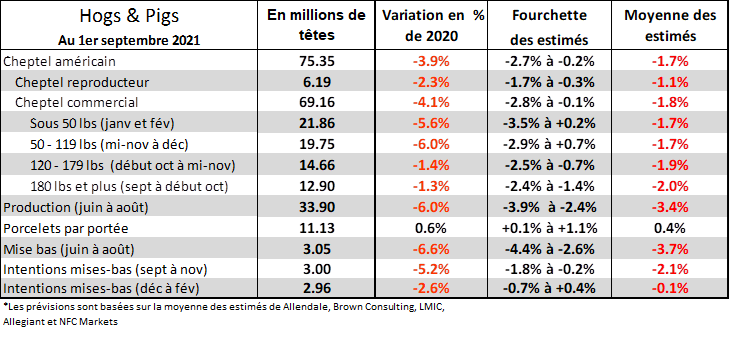 - Cheptel commercial à 69.16M têtes, soit 3 millions de moins que l’an dernier à pareille date