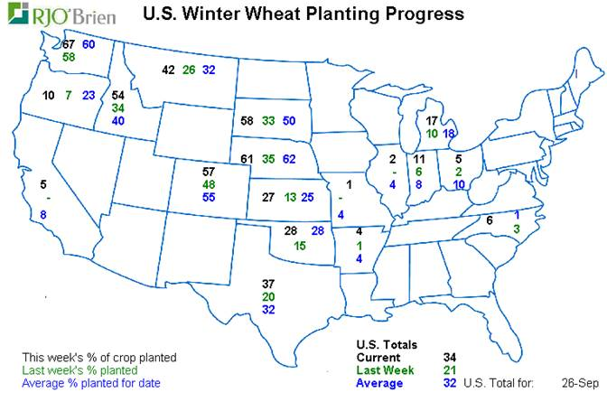 - Semis blé hiver : 34% complété aux USA (32% en moyenne)