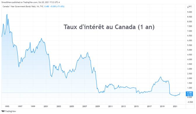 Les taux d’intérêt remontent un peu depuis le printemps :