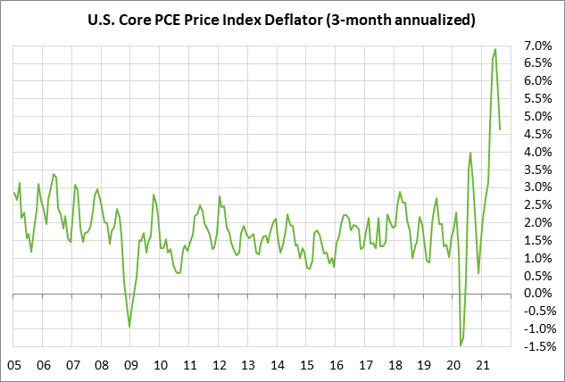 Sur une base annualisée de 3 mois, le déflateur global a diminué à +5,5 % en août par rapport au sommet de +6,9 % observé en mai. Pendant ce temps, le déflateur de base en août s'est détendu à +4,6 % par rapport au sommet de +6,90 % observé en juin. Pourtant, ce sont des chiffres d'inflation élevés qui soulèvent des inquiétudes quant à savoir si l'inflation l'année prochaine reviendra en fait à l'objectif de la Fed de +2%.