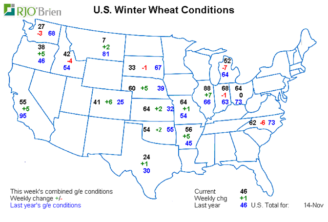 - Conditions blé d'hiver 46% bonnes/excellentes