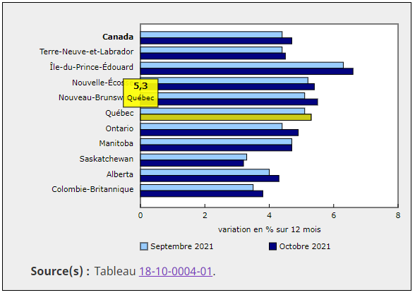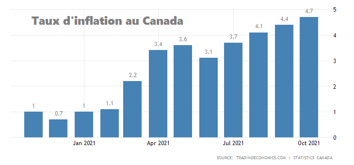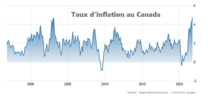 - Inflation très élevée : 4.7% au Canada et 5.3% au Québec