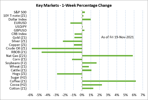 Focus hebdomadaire sur le marché - Les marchés de cette semaine se concentreront sur (1) le calendrier économique chargé de cette semaine aux États-Unis avant les vacances de Thanksgiving de jeudi, (2) la vente par le Trésor de 200 milliards de dollars de bons du Trésor aujourd'hui et mardi, (3) le président Biden devrait annonce de son choix pour le prochain président de la Fed, et (4) si les statistiques d'infection aux États-Unis Covid continuent de s'aggraver.