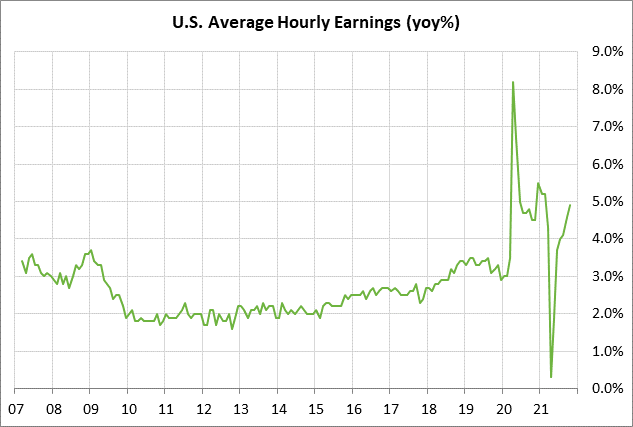Il semble que la seule façon d'éviter une décision de réduction accélérée lors de la réunion du FOMC des 14 et 15 décembre serait s'il y avait un rapport sur la masse salariale étonnamment faible aujourd'hui et un net apaisement des pressions inflationnistes dans le rapport sur l'IPC de vendredi prochain, ce qui ne semble probable. . L'IPC de novembre de vendredi prochain devrait s'accélérer à +6,7% en glissement annuel par rapport aux +6,2% déjà alarmants d'octobre. L'IPC de base de novembre devrait augmenter à +4,9% en glissement annuel contre +4,6% en octobre.