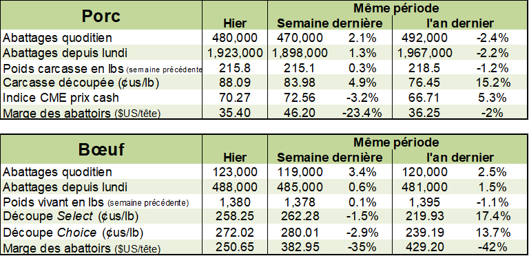 De plus, la demande étrangère pourrait demeurer forte en raison de la demande provenant de tous les pays du Sud-est asiatique qui sont encore au prise avec le virus de la fièvre porcine africaine (Corée du Sud, Vietnam, Philippines, etc).