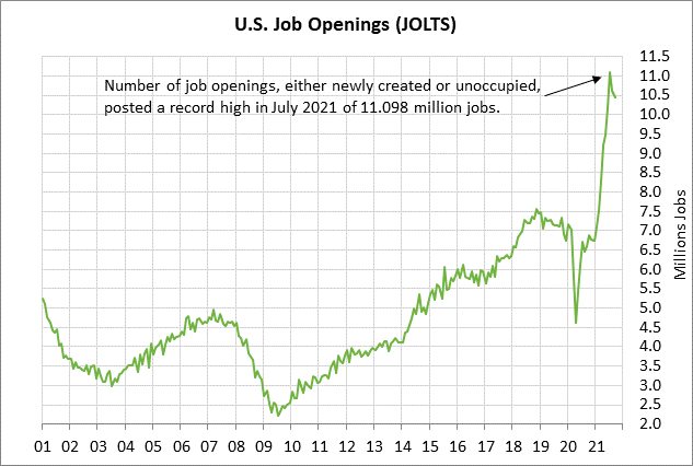 Les offres d'emploi JOLTS devraient rester très fortes - Le consensus est que le rapport sur les offres d'emploi JOLTS d'octobre d'aujourd'hui montre une légère augmentation de +31 000 à 10,469 millions, se stabilisant après la forte baisse de -191 000 en septembre à 10,438 millions. Malgré le déclin de septembre, la série JOLTS est toujours en très bonne forme avec environ 3 millions d'emplois au-dessus du niveau d'avant la pandémie. Cela indique que les entreprises tentent toujours agressivement d'embaucher plus de personnes.