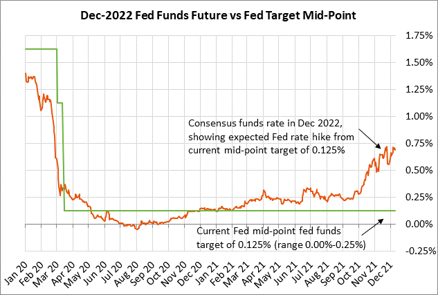 Il semble toujours probable que l'inflation commencera à baisser l'année prochaine alors que l'économie se refroidit et que les pressions du côté de l'offre s'atténuent. Cependant, la Fed ne peut plus attendre que cela se produise. La Fed doit mettre fin à son programme d'assouplissement quantitatif afin de pouvoir commencer à augmenter les taux d'intérêt au deuxième trimestre si nécessaire.