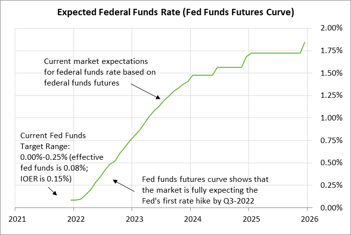 Ce serait une trajectoire de hausse des taux plus lente que celle observée en 2017-2018 lorsque la Fed a relevé le taux des fonds d'un total de deux points de pourcentage en seulement deux ans, passant de 0,375 % fin 2016 à 2,375% fin 2018. Dans cet épisode, la Fed s'est rendu compte qu'elle avait relevé les taux trop rapidement en partie à cause de la chute des actions fin 2018. La Fed a ensuite été contrainte de réduire le taux des fonds de -75 pb à 1,625% fin 2019 pour stabiliser le taux de change. l'économie et le marché boursier.